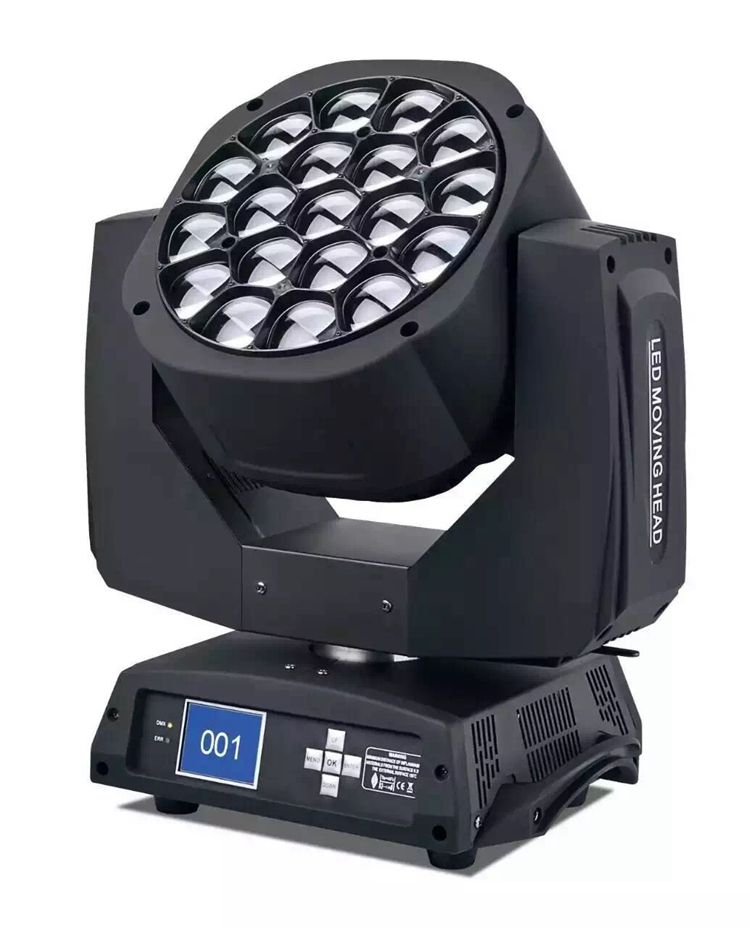 十九颗旋转调焦大蜂眼是一款创新摇头灯具,具有光束,染色,众蜂飞舞的光束三合一功能,以高品质OSRAM REBG四合一LED灯珠为光源,单颗可控,4~60°超大范围变焦,可从Beam到Wash随意转换,独特的可旋转的二次透镜光盘,可创造出美轮美幻的动感效果。